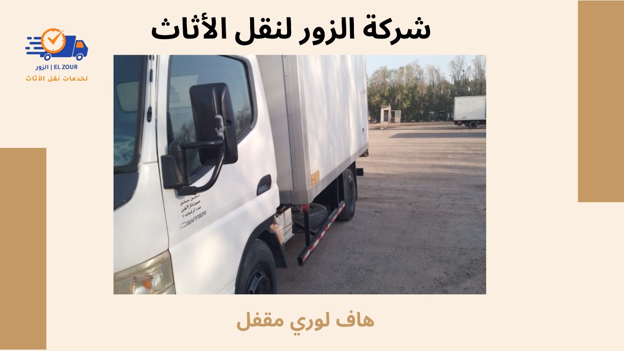 يعتبر هاف لوري مقفل من أهم وسائل النقل الحديثة التي تعتمد عليها شركة الزور في تقديم خدمات النقل المختلفة حيث يوفر هذا النوع من المركبات مستوى عالياً من الحماية والأمان للأثاث والمقتنيات أثناء عملية النقل ويُعد هاف لوري مقفل الخيار الأفضل للأفراد والشركات التي تبحث عن وسيلة نقل تضمن سلامة الأغراض من العوامل الخارجية مثل الغبار أو الأمطار أو أشعة الشمس وتعمل شركة الزور على توفير أسطول من هاف لوري مقفل مجهز بأحدث التجهيزات التي تناسب جميع أنواع عمليات النقل سواء داخل المدن أو بين الإمارات
